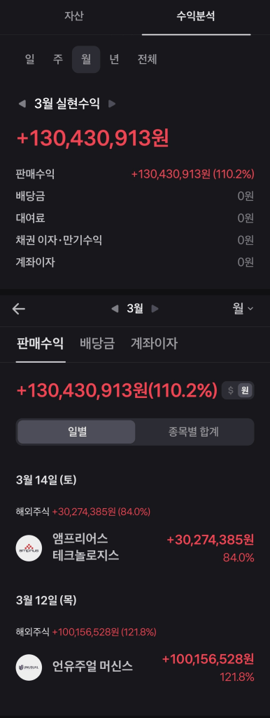 - 돈 자체보다 더 기분이 좋고 도파민이 도는 것은, 나의 가설이 맞았다는 것이다. 최근 몇 개월, 미장이 박스권에 머무르면서 소폭 하향 추세였는데도 불구하고 공략했던 종목들은 모두 상승했다. 스터디한 보람이 있다.